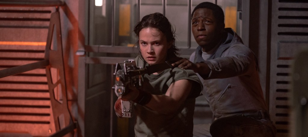 The film follows a group of young space colonizers who are scavenging an abandoned and broken space station, looking for a nice payday. However, it’s not long before they come into contact with the most terrifying life forms in the universe. Cailee Spaeny (Priscilla) leads the ensemble greatly as Rain, a strong yet traumatized protagonist who is simply trying to get herself and her brother Andy (David Jonsson) off the slummy planet they’ve been residing on since their parents died. The chemistry between Spaeny and Jonsson, as well as their individual performances, is the glue that holds the entire emotional core of the film together. From the moment you meet the pair, Alvarez paints their situation and relationship so empathetically that you immediately gravitate towards their plight and situation.